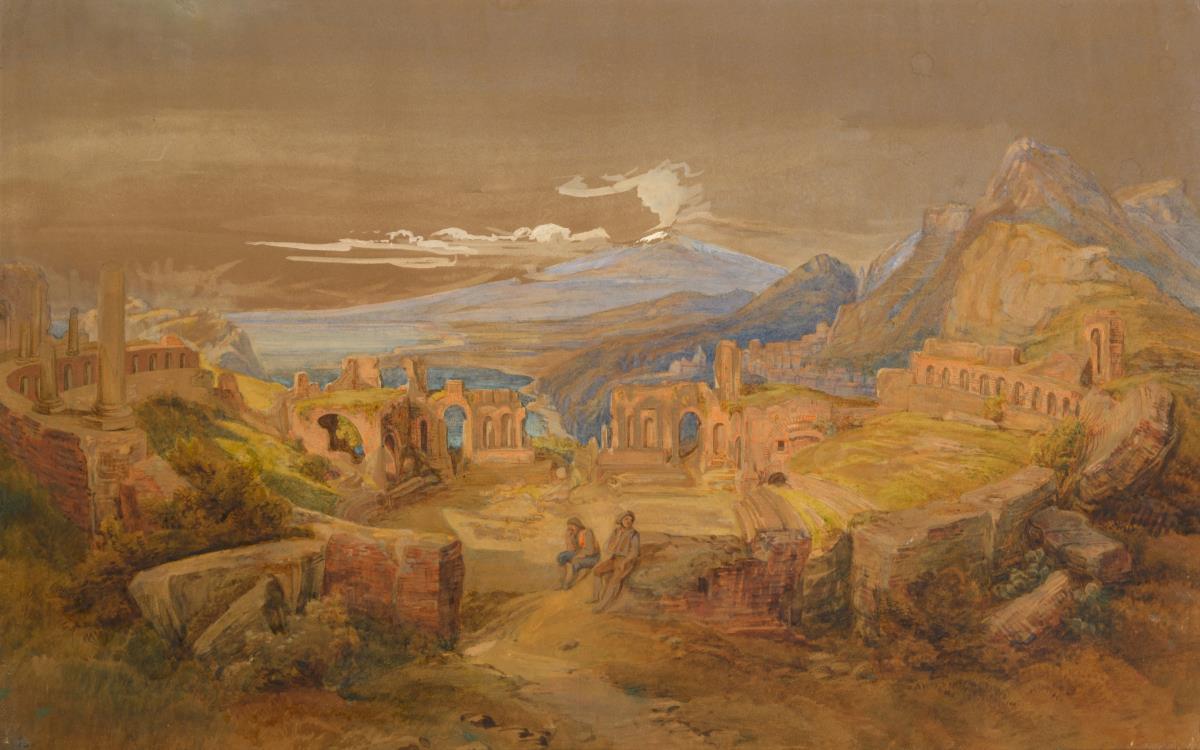 Wassernymphe mit Lyra vor dem Vestatempel von Tivoli